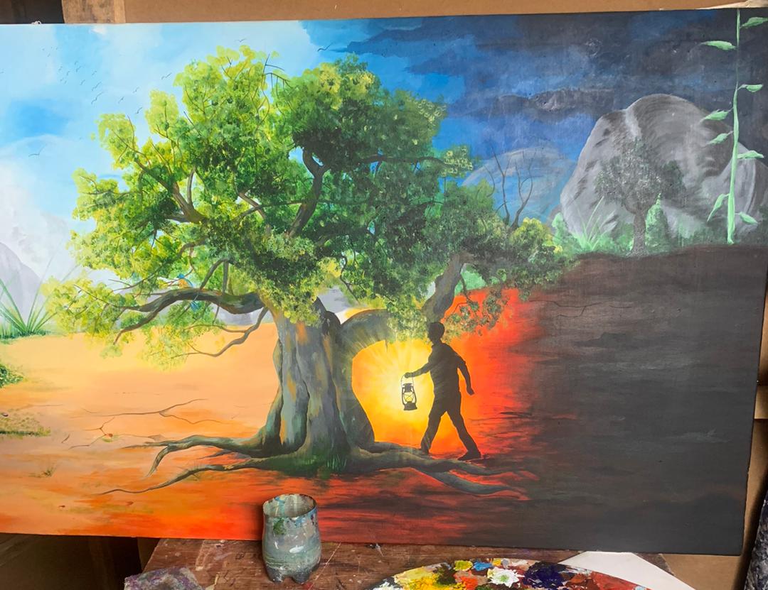 Centers around a large tree, symbolizing growth, strength, and connection to nature.